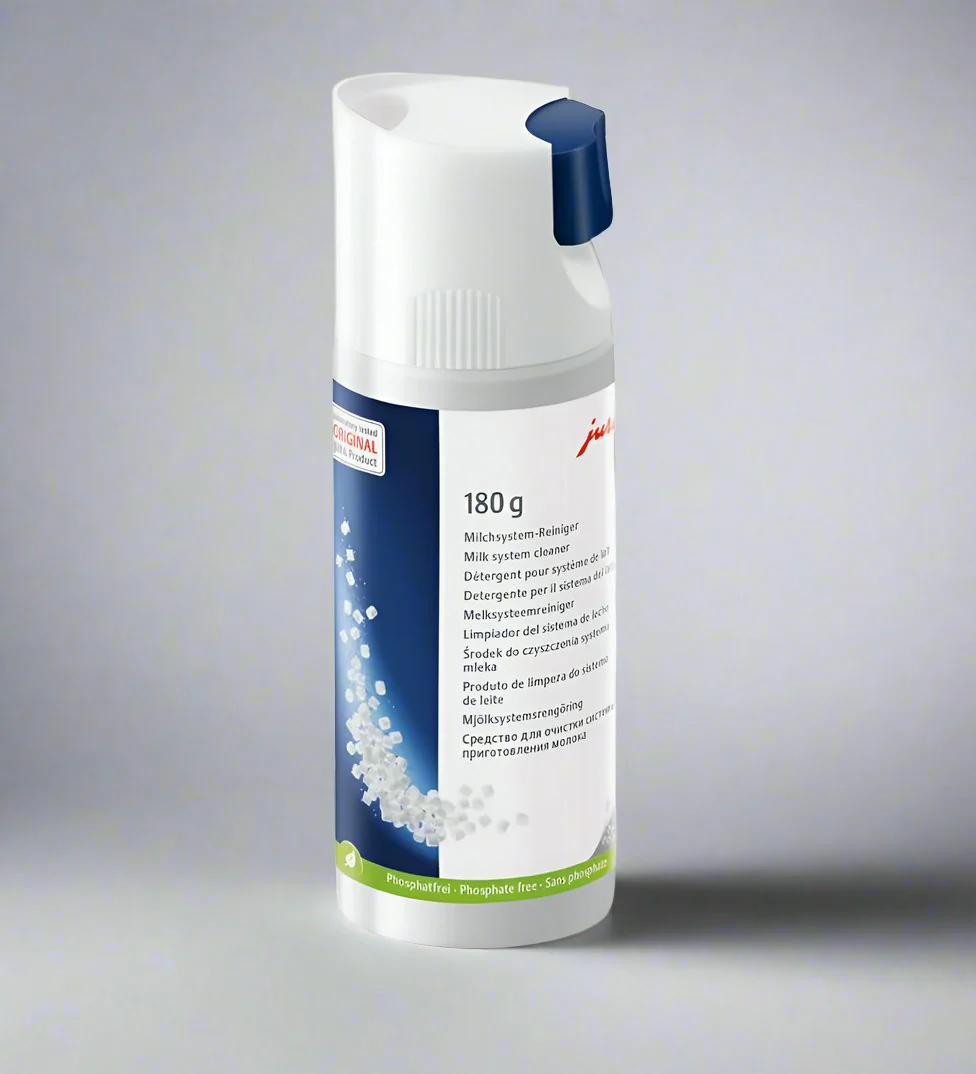 The JURA Milk System Cleaner Mini‑Tabs – 180 g Refillable Bottle provides a convenient and eco-friendly solution for maintaining optimal hygiene in JURA’s fine-foam milk systems. Each compact container delivers 60 automatic cleaning cycles using phosphate-free mini-tabs that effectively dissolve milk fats and proteins, preserving the milk tubing integrity and ensuring consistently airy, light-as-air foam. TÜV-certified for hygiene, this cleaner supports sustainable practice while keeping your specialty coffees — like lattes and cappuccinos — tasting flawless. Compatible with all JURA automatic machines featuring milk frothers, it easily integrates into JURA’s one-touch cleaning system